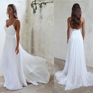 Sexy Spaghetti Straps Beach Wedding Dress Lace Chiffon White Ivory