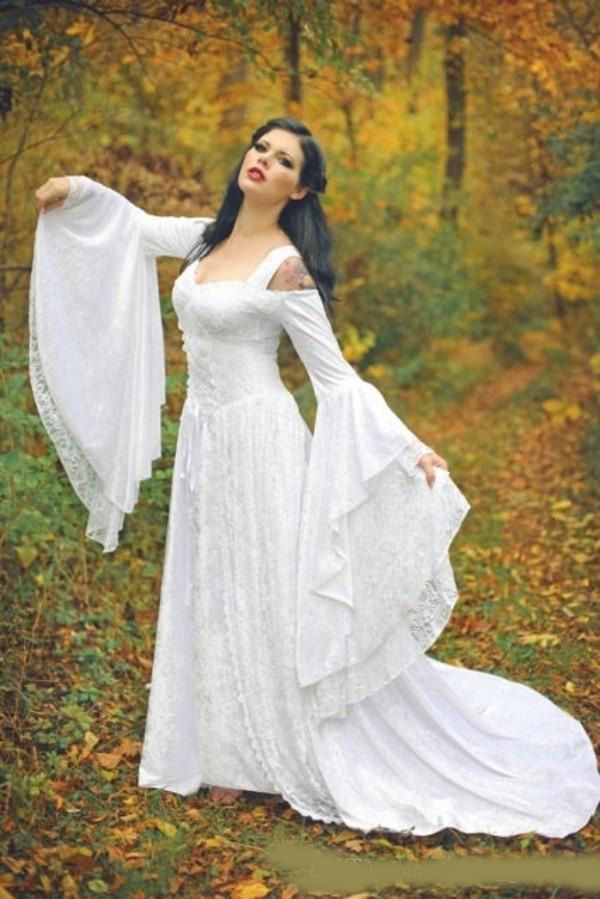Vintage Celtic Gothic Corset Wedding Dresses With Long Sleeve 2019