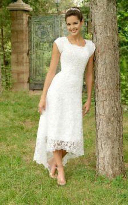 Slim A Line Lace Modest Elegant High Low Skirt Cap Sleeves Elegant