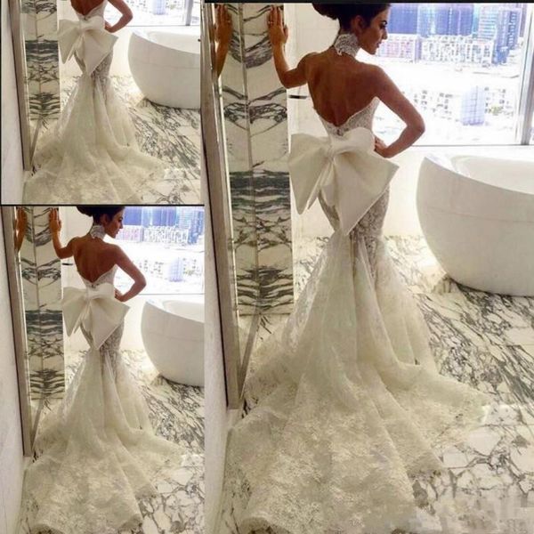 Huge Bow Mermaid Beach Wedding Dresses Cheap Sexy Backless
