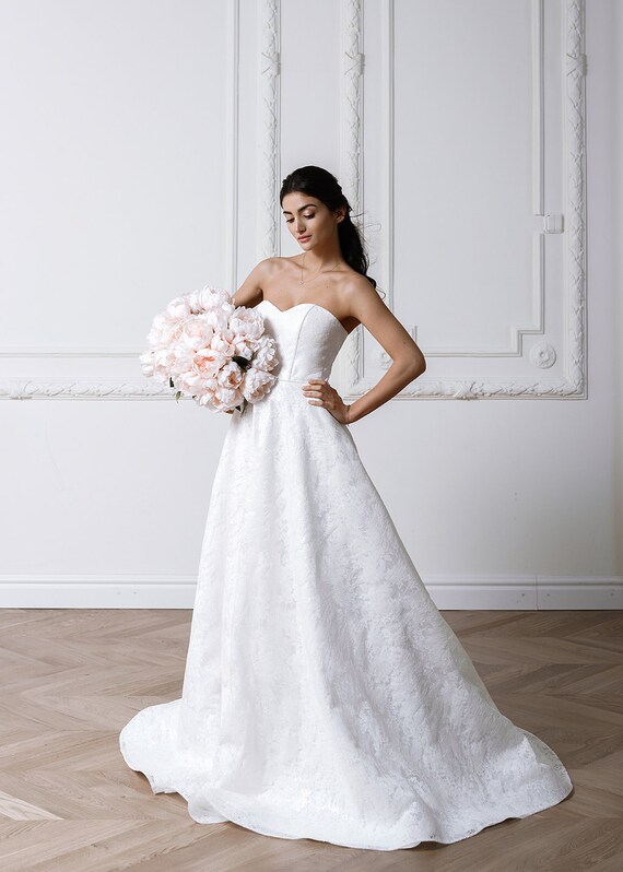 Rustic Lace Wedding Dress With Off The Shoulder Straps Etsy