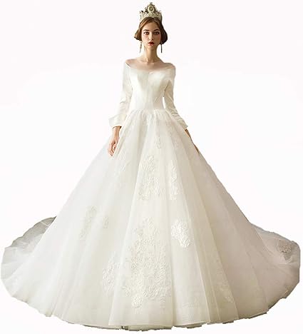 Vintage Satin Wedding Dress With A Trailing Tail Women Lace Top