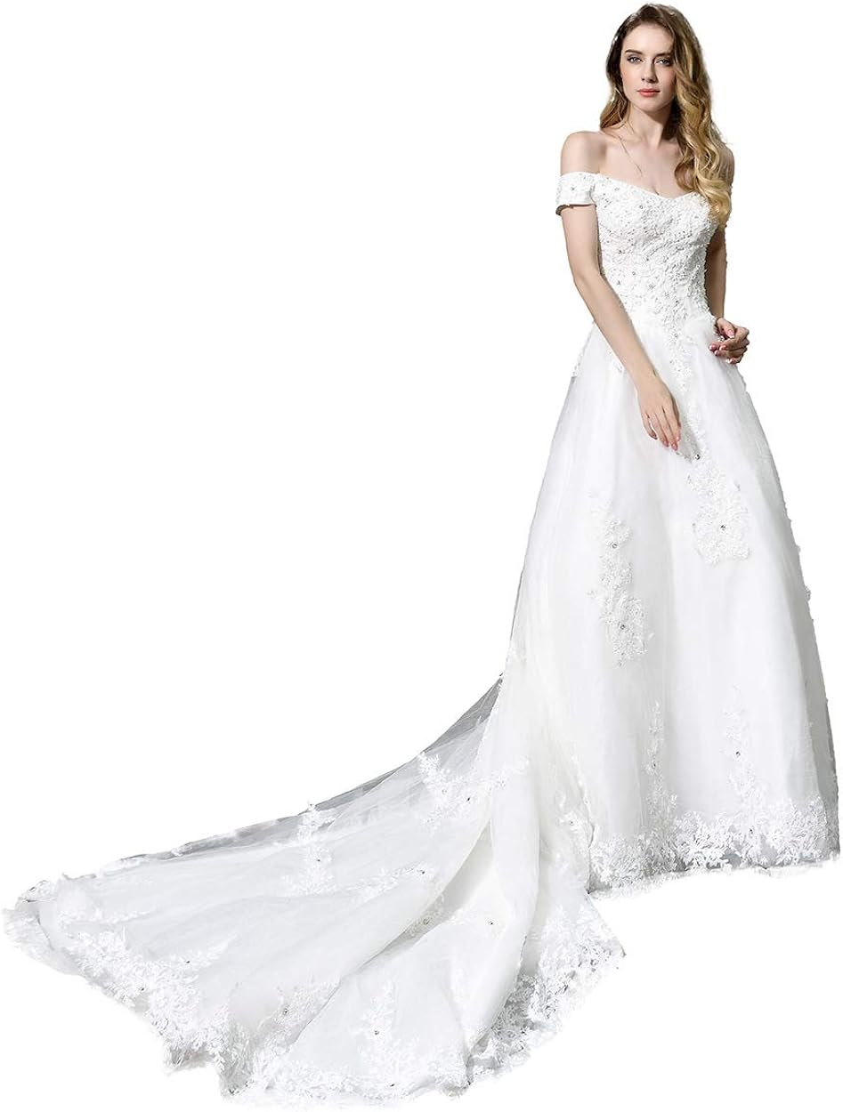Amazon Com Ball Gown Beaded Lace Wedding Dresses Off Shoulder