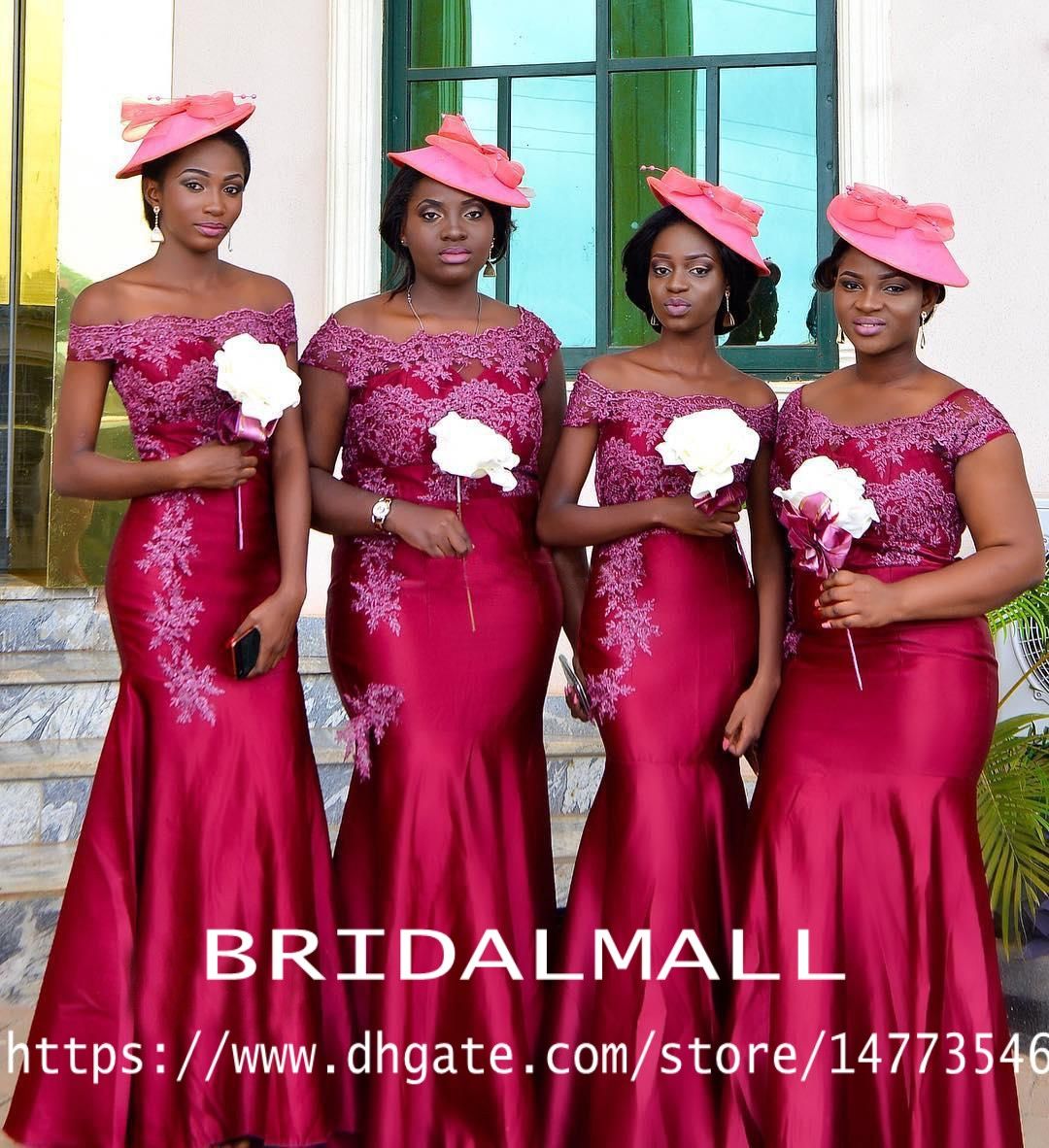 Red African Long Bridesmaid Dresses 2019 Mermaid Satin Off