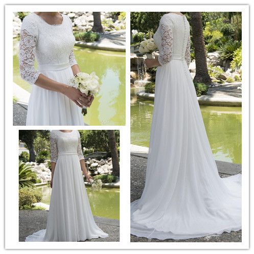 Discount Bride Elegant New Lace Chiffon Modest Beach Wedding