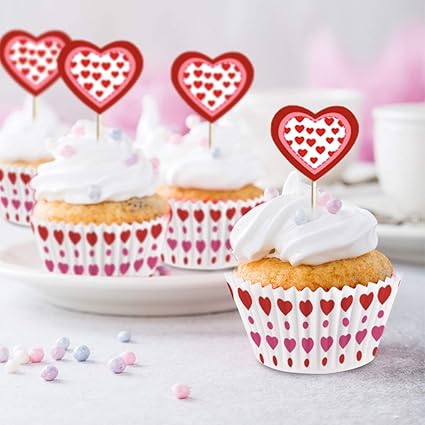 Heart Cupcakes Wrappers And Toppers Valentine S Day Baking Cups