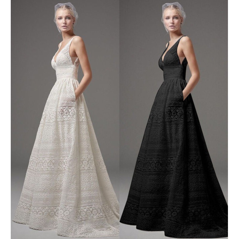 Dress White Lace Long Evening Dress Bride Wedding Dress Shopee