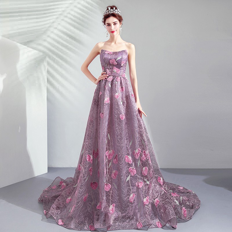 Fairy Angel Wedding Dress Rose Gold Silk Elegant Pink Purple