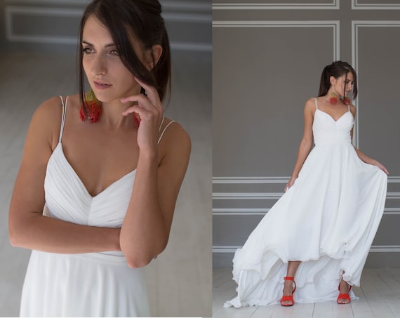 Chiffon Wedding Dress Beach Wedding Dress With Hi Low Skirt Etsy