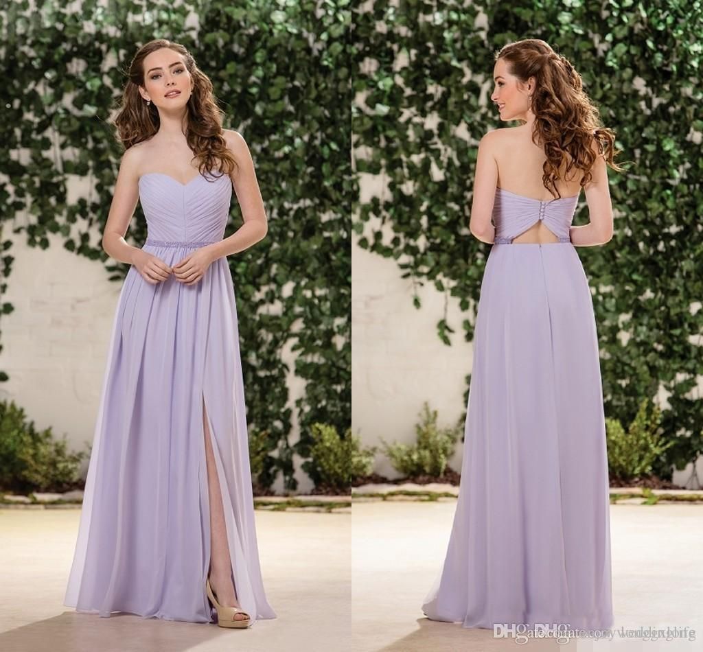 Lilac Lavender Chiffon Bridesmaid Dresses Sweetheart Side Split