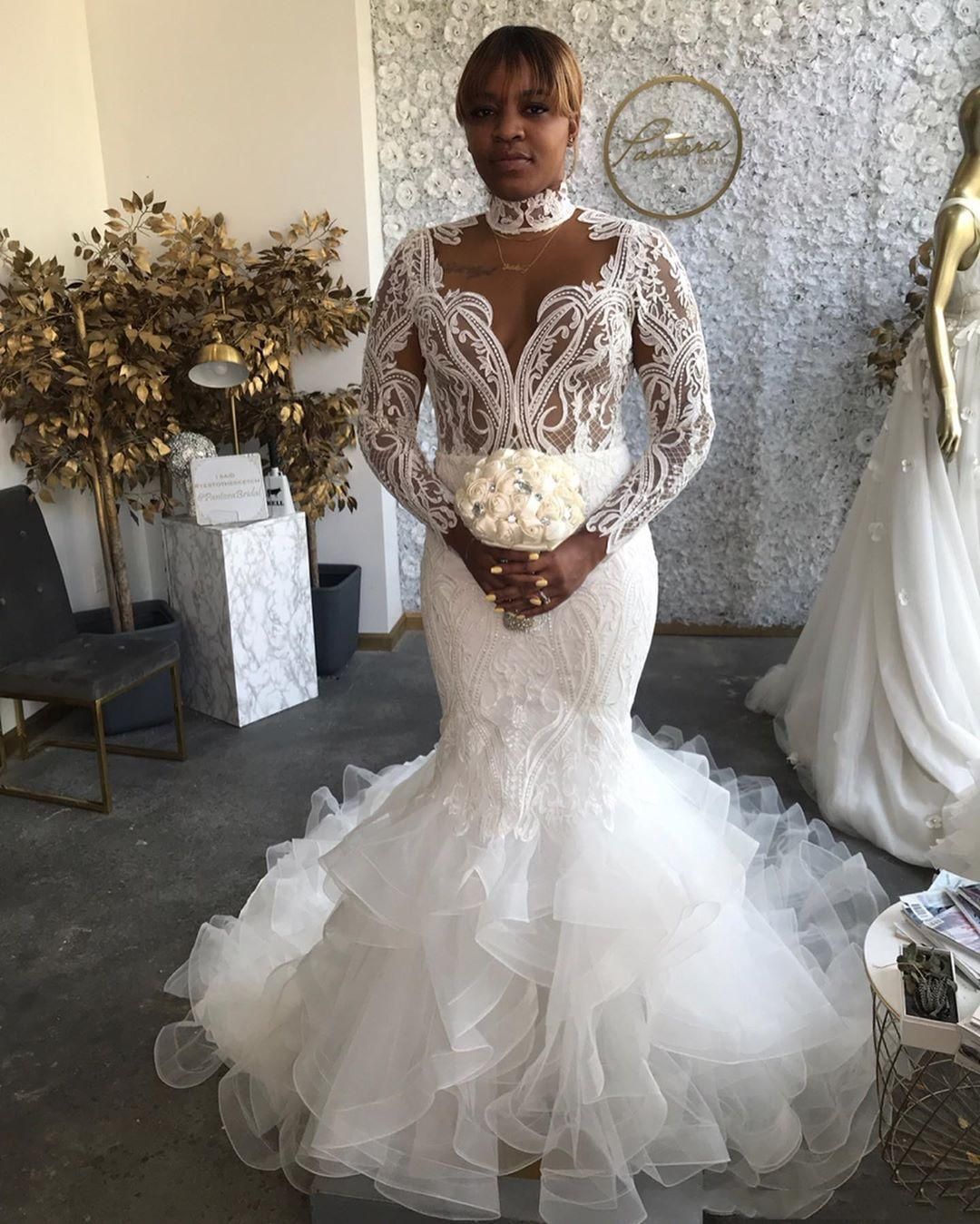 Vintage Lace Boho Mermaid Wedding Dresses Long Sleeves High Neck