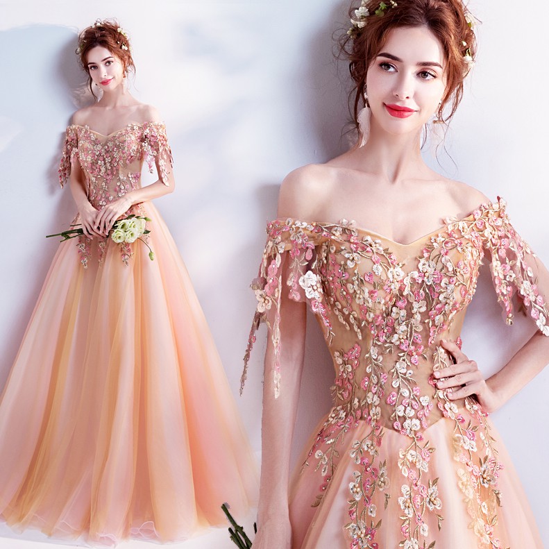 Peach Off Shoulder Prom Wedding Ball Dress Rb0790 Wedding For