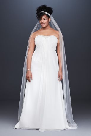 Pleated Chiffon Plus Size Wedding Dress With Beads David S Bridal