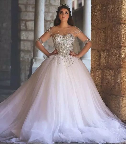 Stunning Beaded Rhinstone Tulle Wedding Dresses Arabic Dubai
