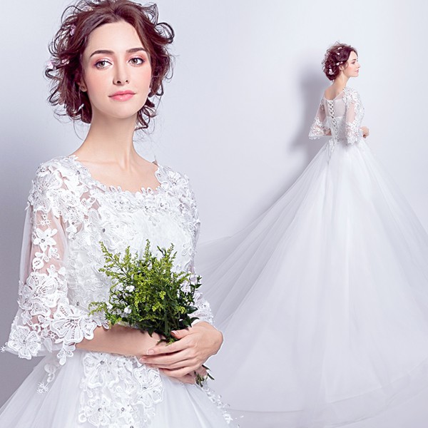 Angel Wedding Dress Romantic Lace Trumpet Sleeves Spring Lon
