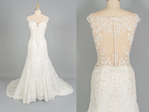 Beautiful Fit Flare Lace Sheer Top Wedding Gown Etsy