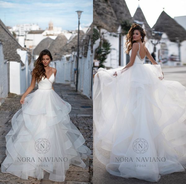 Discount 2020 Simple Boho Wedding Dresses A Line Lace Beads Tiered