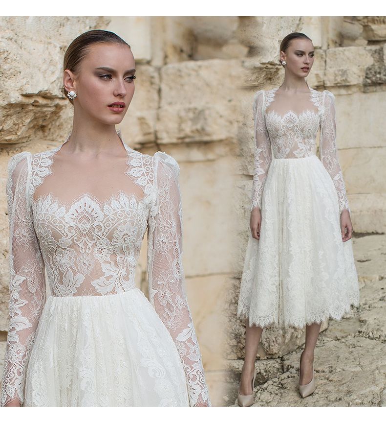 As one of the comprehensive wedding dress retailers around we couldnt but include an extensive range of tea length bridal dresses like davids bridal jlm couture and so on. If youre looking for lace and sleeves when picking the dress of your dreams you wont be disappointed with our stunning selection of short lace wedding gowns with sleeves. Compare with other sweep floor wedding dresses te length dresses are less.