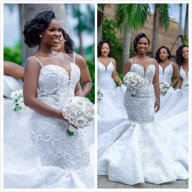 2019 Arabic Luxurious Sexy Mermaid Wedding Dresses Spaghetti
