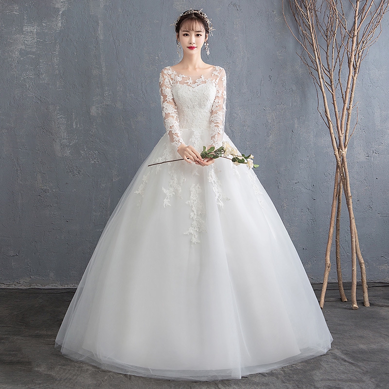 The Wedding Dress Female 2019 Long Sleeved White Tail Prince
