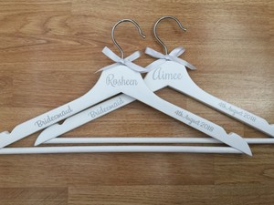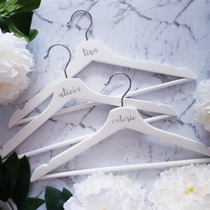 Personalised White Wooden Bridal Hangers Printed Wedding Dress