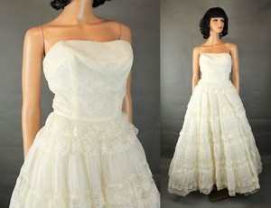 50s Wedding Gown Xs Off White Tiered Lace Chiffon Tulle Strapless