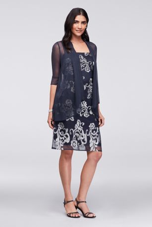Metallic Embroidered Shift Dress With Sheer Jacket David S Bridal