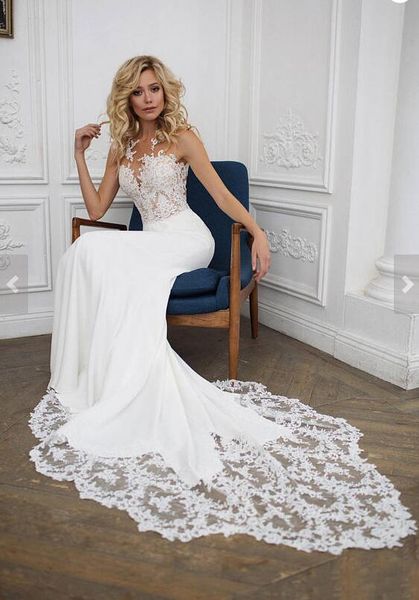 Mermaid Wedding Dress Illusion Back Wedding Dress Pearl Buttons