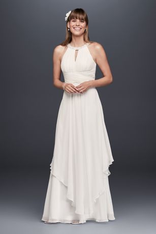 Long Chiffon Dress With Keyhole Detail David S Bridal