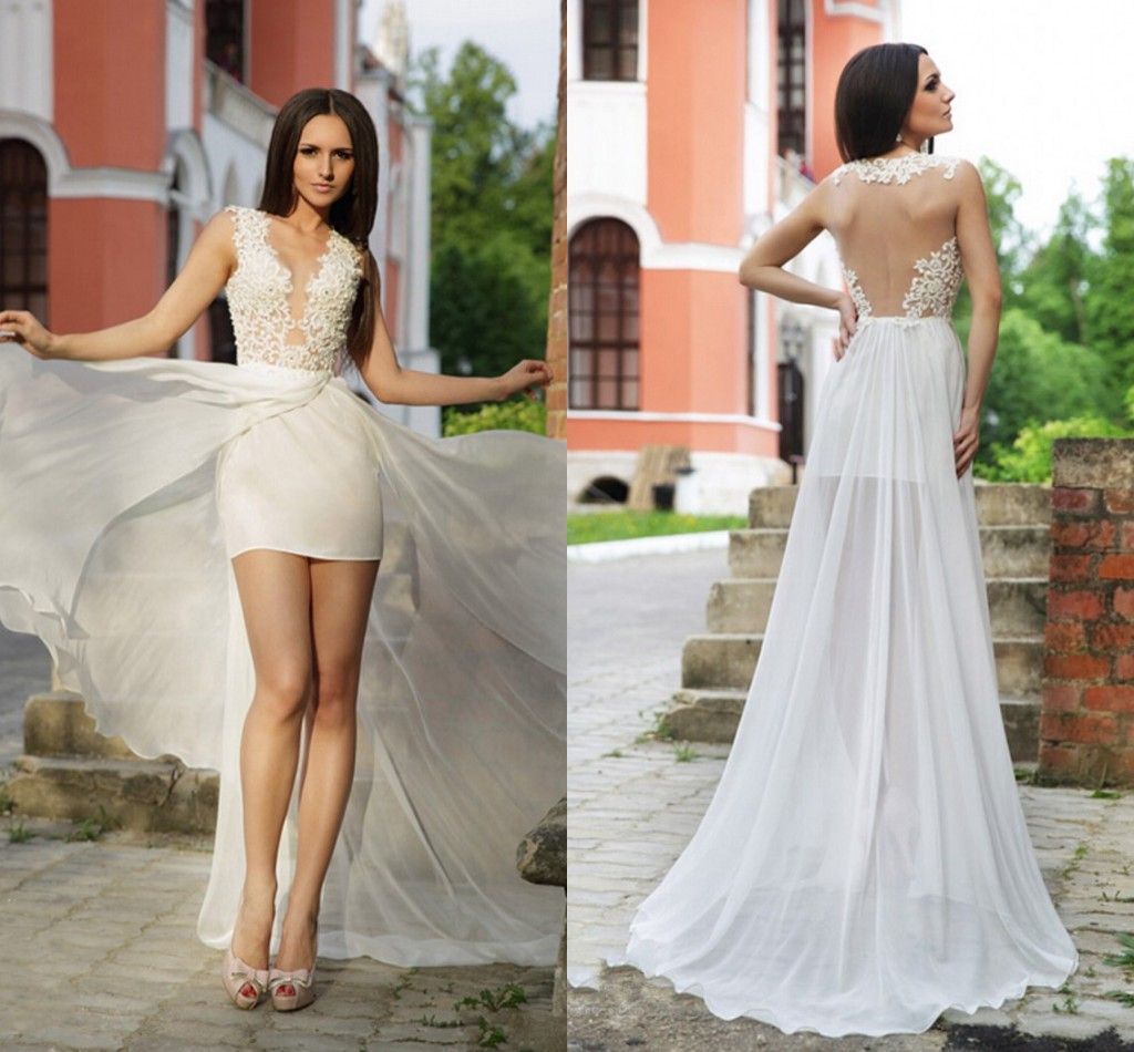 Summer Backless Beach Wedding Dresses High Low Two Layers Chiffon
