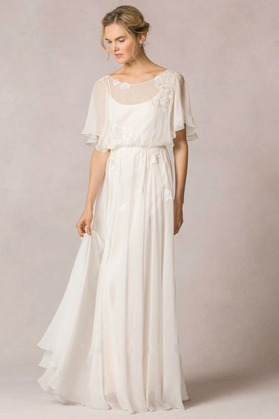 Sheath Chiffon Wedding Dress Scoop Neck Low V Back Plus Size