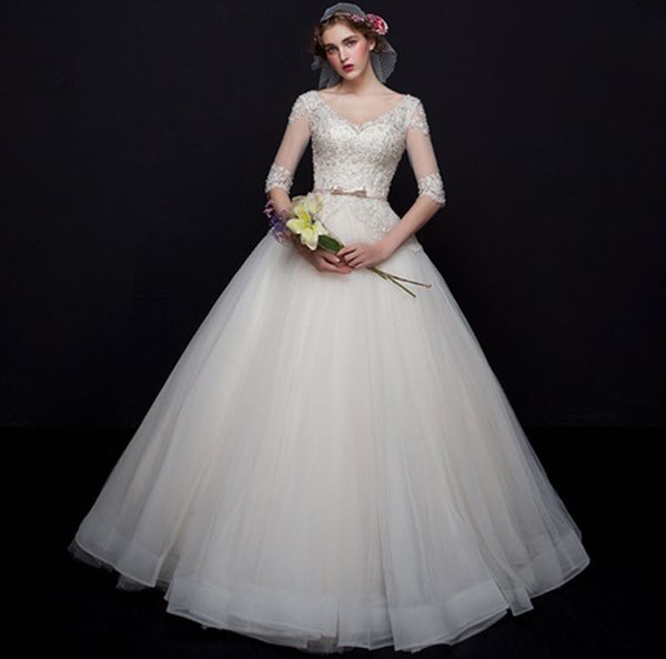 Winter Long Sleeve Wedding Dress Small Trailing V Neck Pregnant