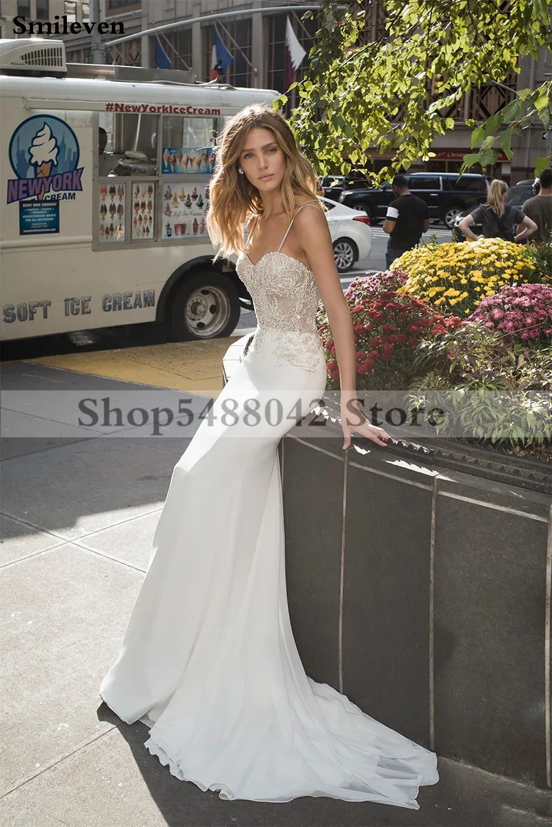 Smileven Mermaid Wedding Dress 2019 Vintage Lace Spaghetti Strap