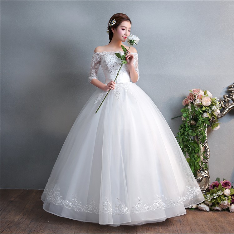 Off Shoulder Halfsleeve Fake Diamond Decor Embroidered Wedding