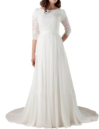 Amazon Com Jcdress Simple Elegant Lace Wedding Dress Modesty