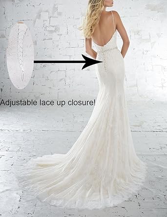 Women S Mermaid Lace Wedding Dresses Beaded Backless Long Bridal