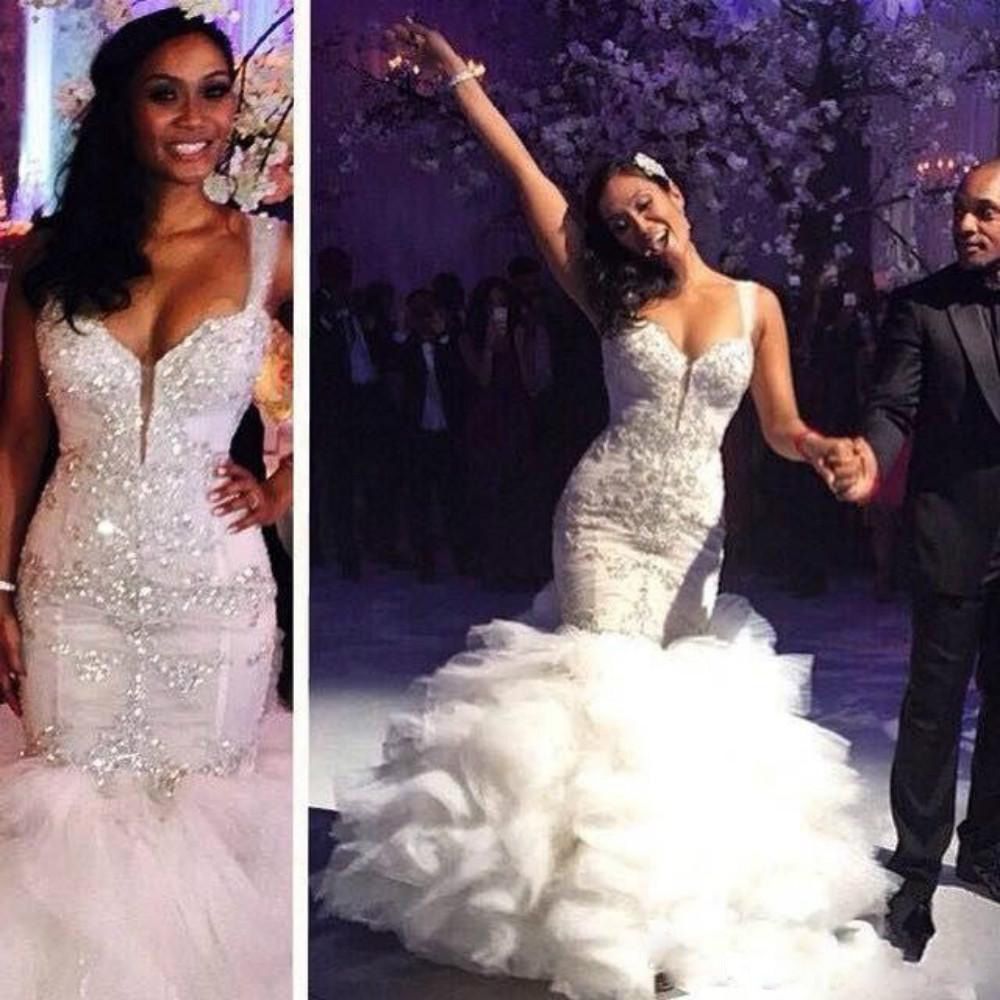 Real Photos Bling Crystal Beadeds Luxury Wedding Dress Mermaid