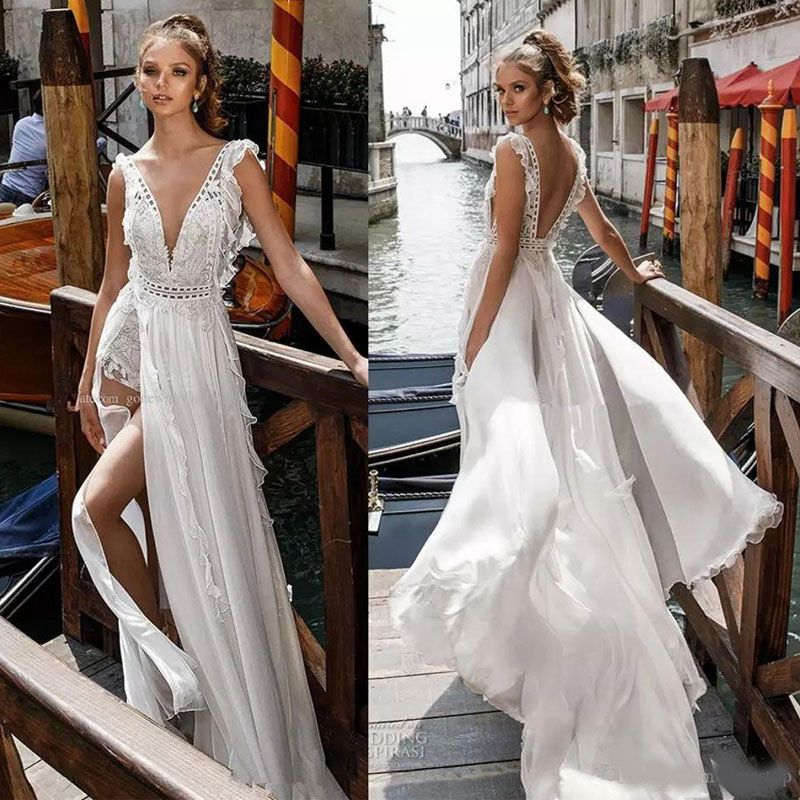 Discount Romantic Side Split Flowy Skirt Sexy Wedding Dresses 2019