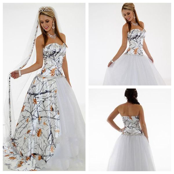 Discount Fashion White Snow Camo Wedding Dresses With Glitter Net