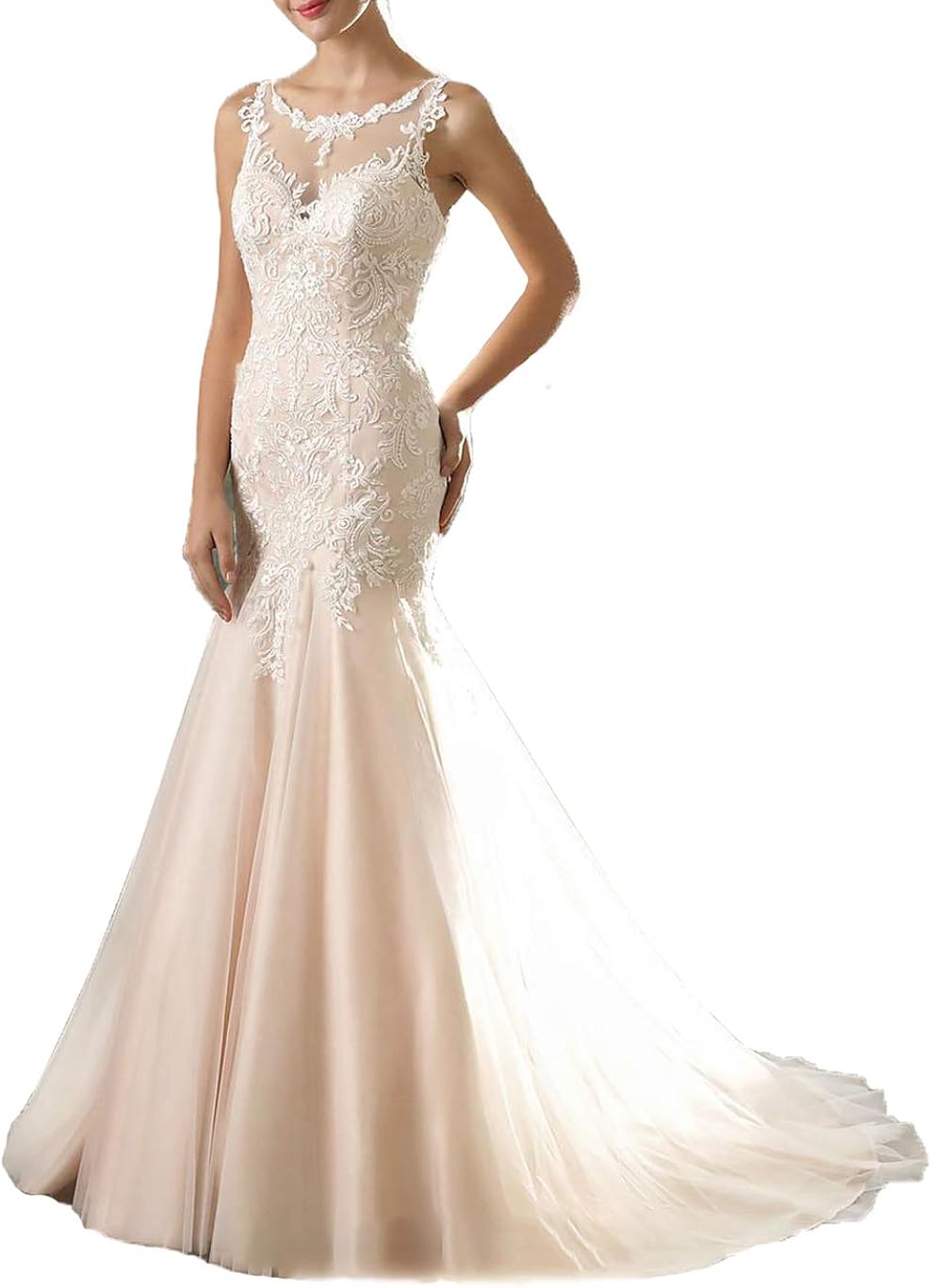 Lovely Romana Women S Mermaid Lace Appliqued Bridal Gown Scoop