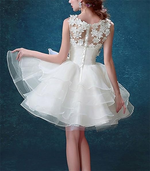 Hatail Applique Lace Wedding Dress Short Beaded Ruffle Layers