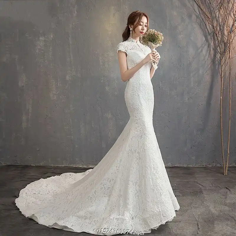 Beautiful White Lace Wedding Dress 2019 Long Mermaid Vestidos De