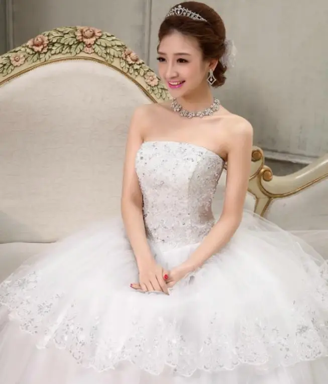 Vamolasc Crystal Strapless Tiered Lace Appliques Ball Gown Wedding