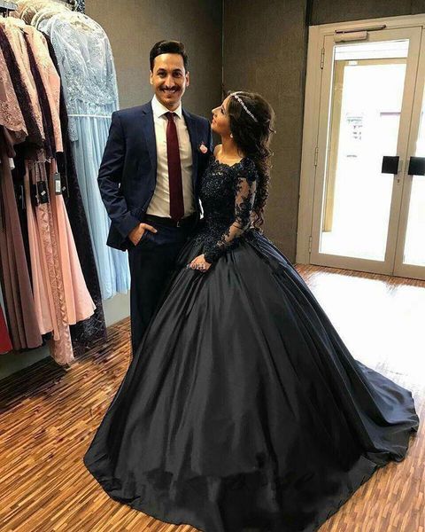 Discount 2019 Vintage Ball Gown Black Wedding Dresses Satin Long