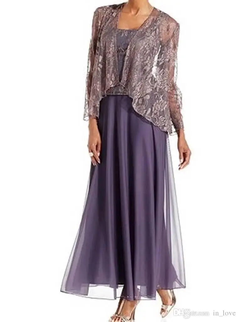 Ankle Length Mother Of The Bride Dresses With Jacket Lace Chiffon