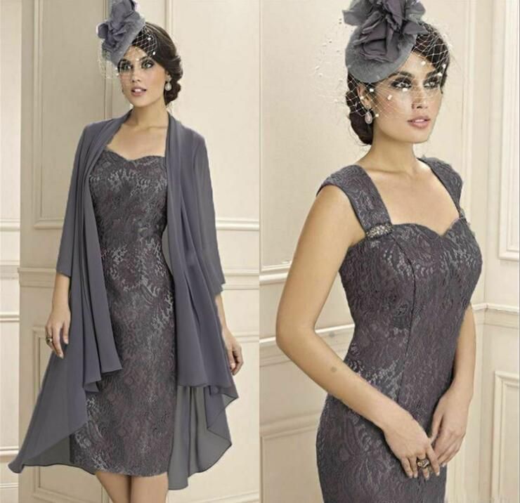 Elegant Sheath Short Mother Formal Wear With Jacket Evening Lace