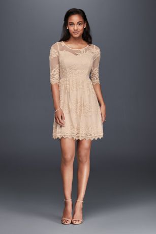 Open Back Fit And Flare Dress With 3 4 Sleeves David S Bridal