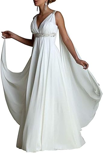 Ethel Women S V Neck Chiffon Greek Style Crystal Wedding Dress