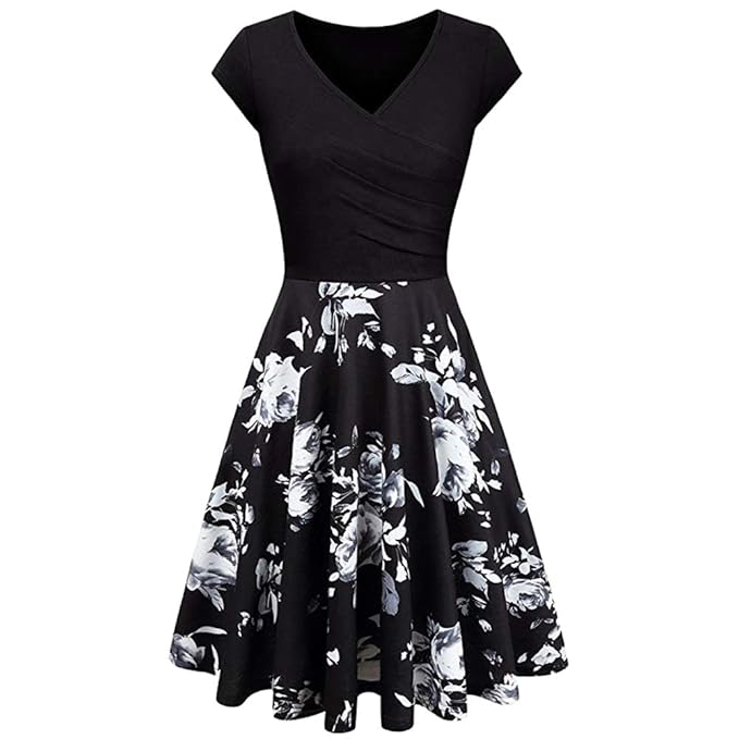 Iwemek Women S Cross V Neck A Line Floral Patchwork Party Knee