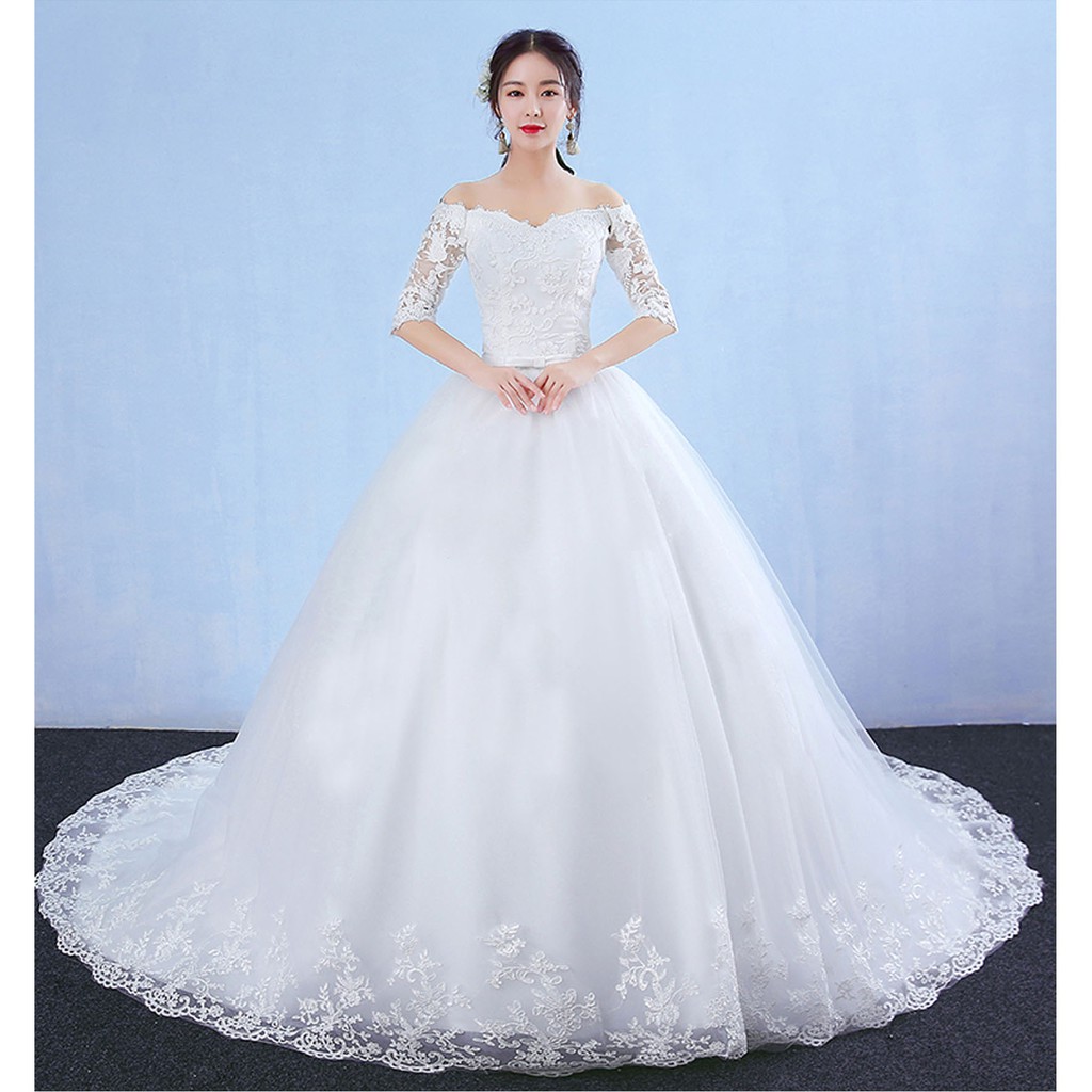 Korean Style Off Shoulder Long Wedding Dress R001 Shopee